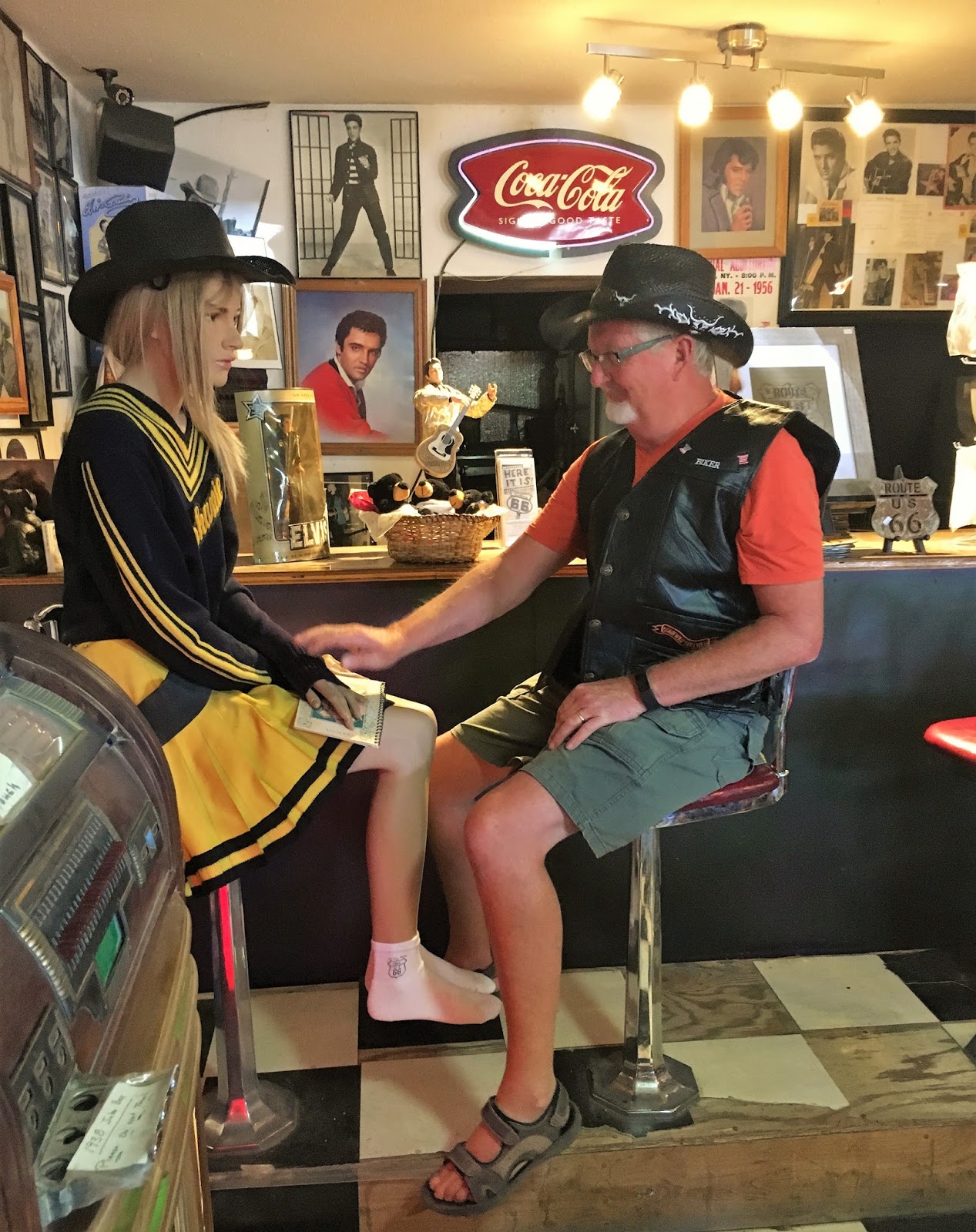 The gentleman at the counter said I owed him $100 bucks for borrowing the props to take the picture, but agreed that if I mentioned this place and its owner Amy Franklin in my blog he would wave the fee. He told us that Amy was the newest owner of the place and we hope she does well with this venture.