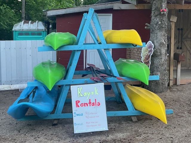 We had to move the kayak rack into place and put the kayaks on it. We are ready to rent them out again for another year.